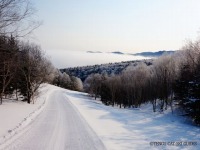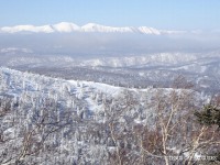 前日にノートラックの底なしパウダーを存分に味わい、北海道トリップのハイライトをここ白滝天狗岳エリアに持ってきてくれたリピーターのゲスト5名とともに、小天狗岳からシールを付け、またはスノーシューでハイクをスタートしました。快晴無風の中、北東のオホーツク海方面に目を向ければ、流氷が薄っすらと接近しているではありませんか!今年は流氷が接岸するのも早いかもしれませんね。(※網走では2月1日に流氷初日を迎えました)