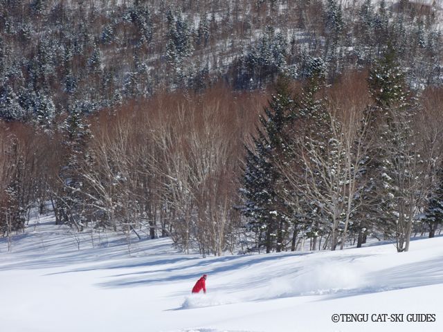 まとまった降雪こそなかったものの、TENGUエリア特有の保存状態の良いパウダーの走る雪は文句なしの素晴らしい出来栄え。もちろんノ―トラックはお約束!この日は天気も良く、まさにblue bird day!!